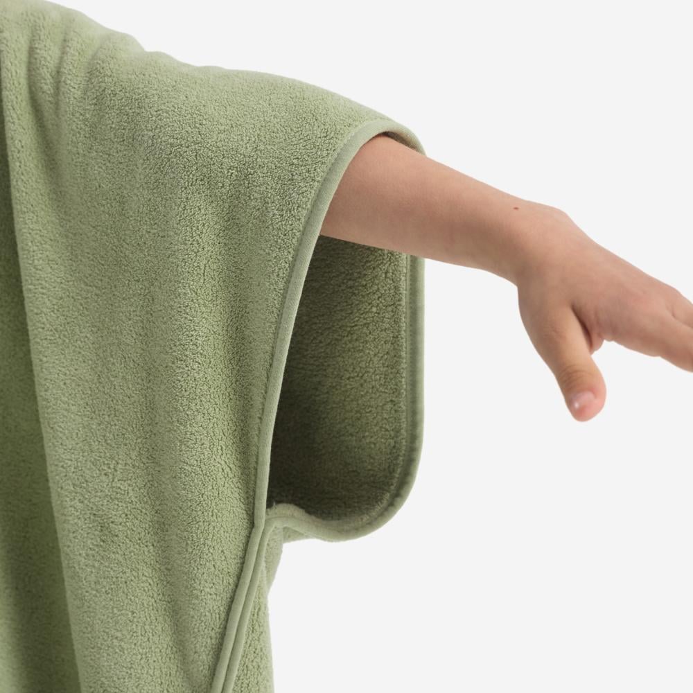يأتي بتصميم بونشو سهل اللبس مع قبعة تضيف لمسة مرحة ودافئة، ويمكن للطفل ارتداؤه بنفسه أو بمساعدة بسيطة.